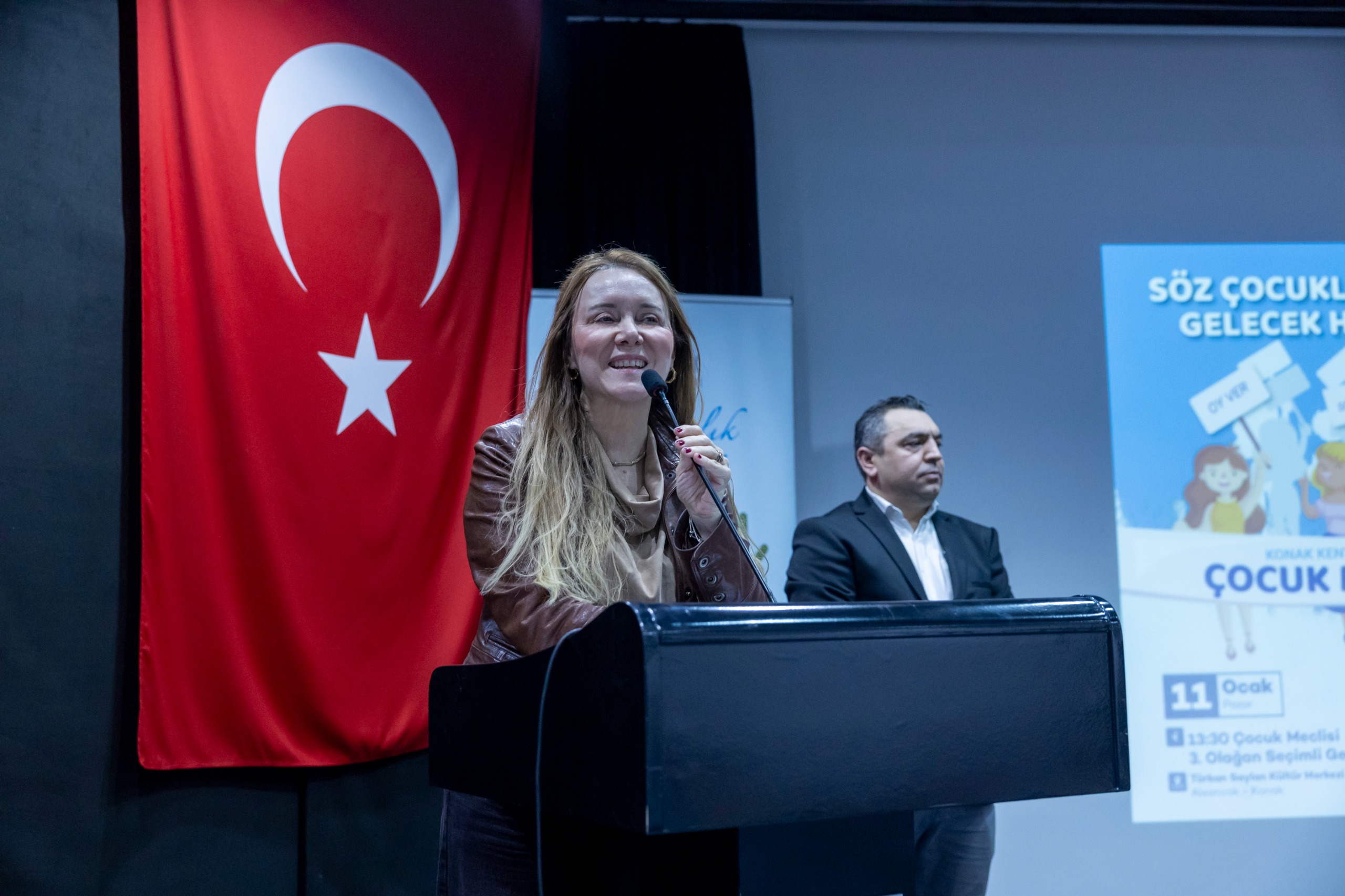 Genel Kurul’da çocukları yalnız bırakmayarak seçim heyecanlarına ortak olan Konak Belediye Başkanı Nilüfer Çınarlı Mutlu, seçim başlamadan önce yaptığı konuşmada 6 yıl aradan sonra yeniden aktif hale gelen Çocuk Meclisi’nin önemine dikkat çekerek, “Bugün burada sizlerle birlikte olmak benim için çok heyecan verici. Göreve geldiğim günden beri en büyük isteğim Çocuk Meclisi’nin yeniden aktif olmasıydı. Katılımcı bir yerel yönetim anlayışıyla Konak’ı yönetiyoruz. Konak’ta yaşayan herkesin söz sahibi olduğu ve düşüncesini paylaştığı bir Konak hedefimiz var. Çocuk dostu bir kent için yola çıktık. Herkesin katılımcı bir anlayışla planlamasında yer aldığı bir kentin daha fazla sahiplenileceğine inanıyorum. Her mahalleye eşit hizmet götürmek için inanılmaz bir gayret içindeyiz. Bu binada yer alan Gençlik Merkezi’mizde ders çalışabilir, oyunlar oynayabilir veya içerisinde yer alan kütüphaneden faydalanabilirsiniz. Tüm bunları sizlerin desteği, önerileri ve katılımı ile geliştirmek istiyoruz. Bugün burada bir yürütme kurulu seçilecek ama hepiniz etkinliklerimize katılır ve önerilerinizle bizleri beslerseniz çok mutlu oluruz. Her bir fikir, hem Konak’ı, hem İzmir’i hem de ülkemizi çok daha ileriye taşıyacak. Hepinize geldiğiniz çok teşekkür ediyorum, görev alacaklara da şimdiden başarılar diliyorum” dedi.