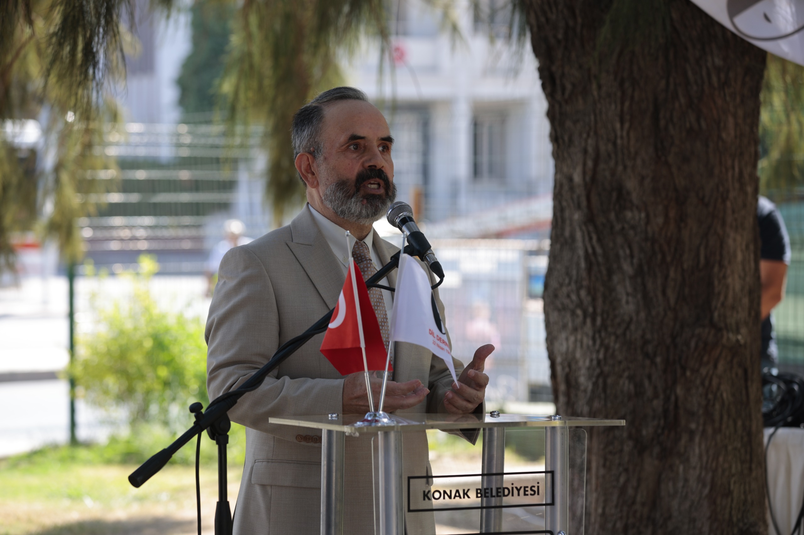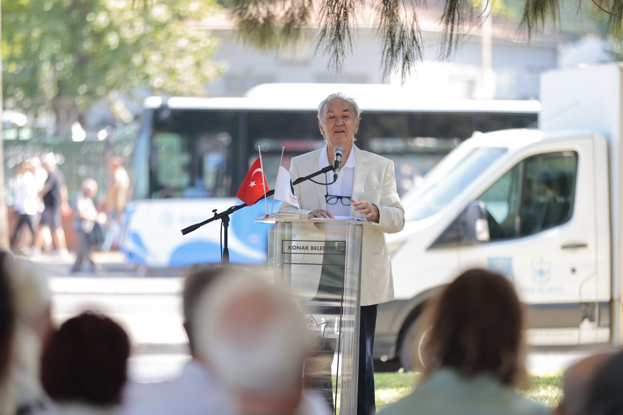 Konak Belediyesi’nin Dil Derneği İzmir Şubesiyle birlikte Türkçe Taşı Anıtı önünde düzenlediği etkinlikte, Dil Devrimi’nin 93. yıldönümü kutlandı. Etkinlikte konuşan Başkan Mutlu, “Dil Devrimi sadece alfabenin değişmesi değildi; devrim, Türkçeye sahip çıkmak, Türkçeyi diğer dillerin boyunduruğundan arındırarak kendi öz kimliğimizle birlikte yaşatmaktı” dedi.
