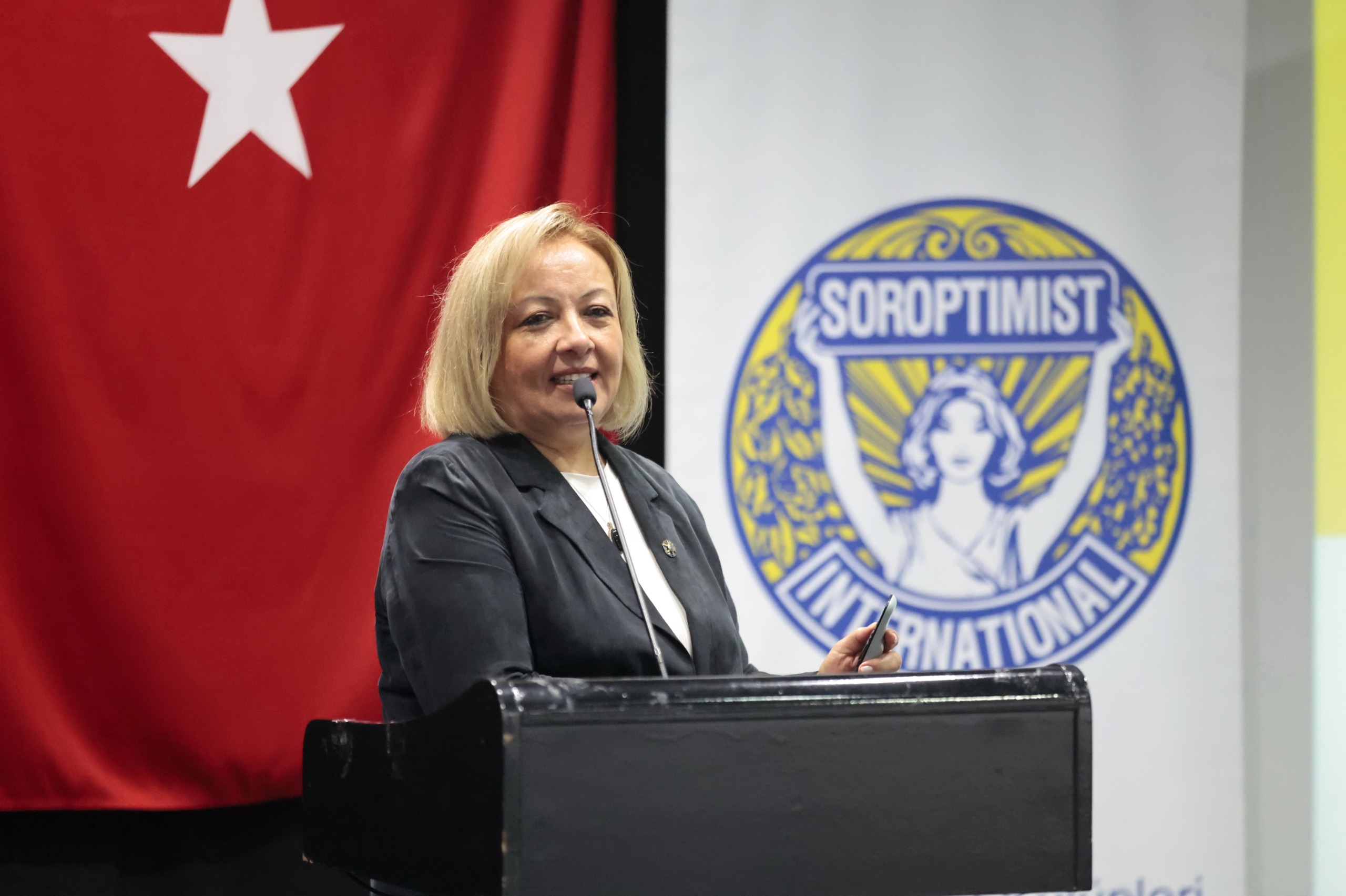 Türkiye Soroptimist Kulüpleri Federasyonu Başkanı Betül Elmasoğlu, yaptığı konuşmada Toplumun Yeşil Liderleri: Kadın Muhtarlarla Çevre Farkındalığı projesini anlattı. Kadın muhtarların önemini vurgulayan Elmasoğlu, “Projemizle, sürdürülebilir çevre ve kadın çalışma grubunun toplumla ilk temas noktası olarak gördüğü kadın muhtarların farkındalığının artırılmasını ve aldıkları bilgileri mahallelerinde aktarmalarını hedefliyoruz. Bugün, atık yönetimi nasıl olmalı, sürdürebilirlik çalışmaları ve uygulamaları, çevresel ayak izi gibi konuları işleyeceğiz” ifadelerini kullandı.