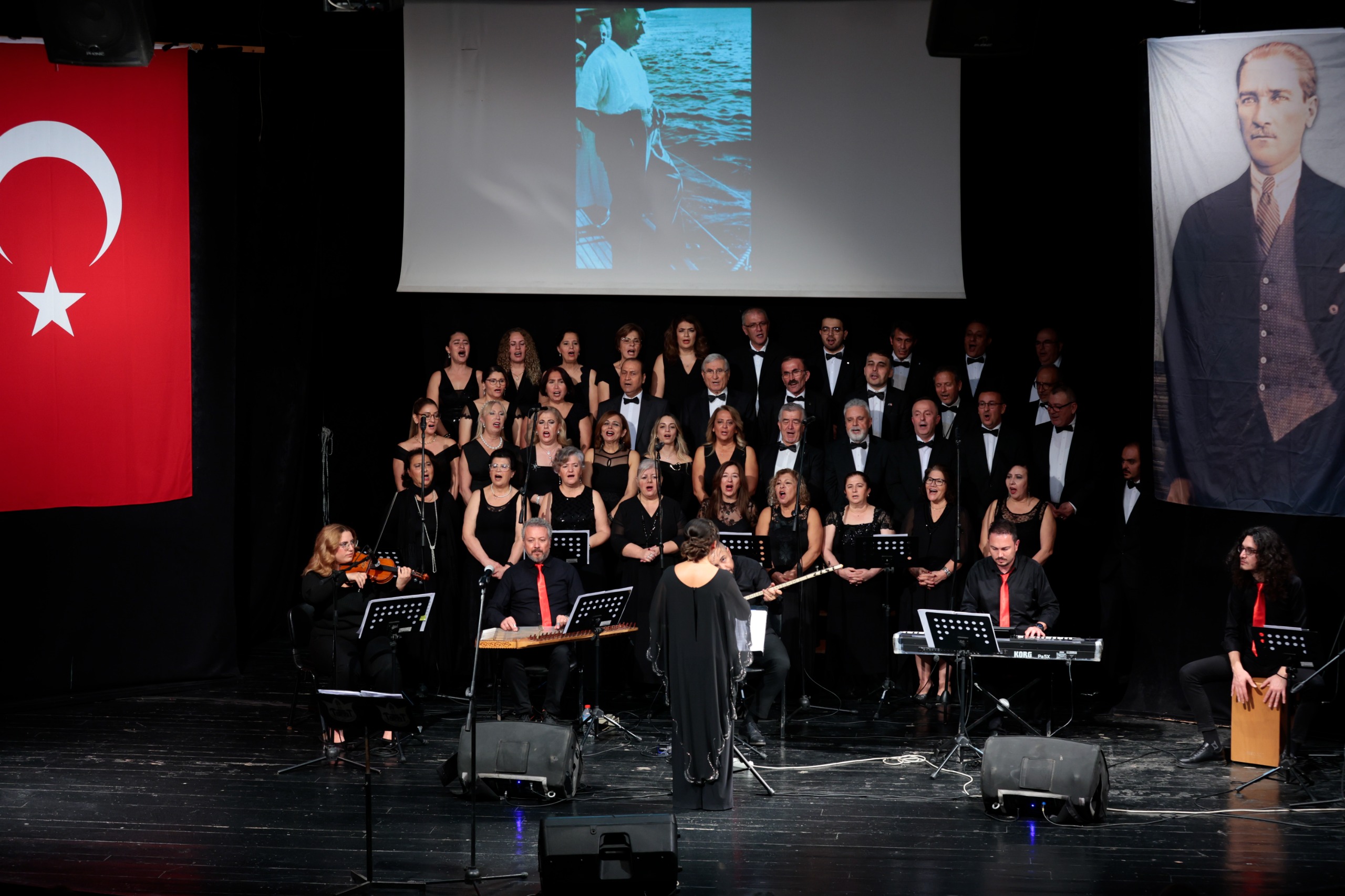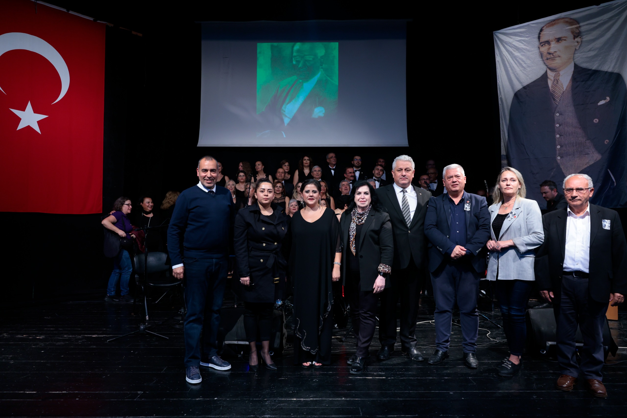 Konak Belediyesi Türk Halk Müziği Topluluğu, Ulu Önder Gazi Mustafa Kemal Atatürk’ün ebediyete intikalinin 87. yılı anma etkinlikleri kapsamında Konaklılara unutulmaz bir konser verdi. Güzelyalı Nazım Hikmet Kültür Merkezi’nde yoğun katılımla gerçekleşen “Sonsuz İz” adlı konserde, Atatürk’ün sevdiği şarkıları Şef Bahar Almaç yönetiminde seslendiren koro üyeleri, “Fikrimin İnce Gülü”, “Manastırın Ortasında”, “Kırmızı Gülün Alı Var” ve “Hoş Gelişler Ola” gibi 15 eserle Konaklılara duygu dolu anlar yaşattı. Konak Belediyesi Meclis Üyeleri, CHP Konak İlçe Yöneticileri, belediye bürokratları, siyasi parti temsilcileri, muhtarlar ve vatandaşlar konseri ilgiyle izledi.