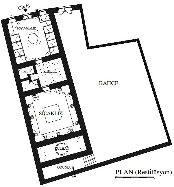 Restorasyon çalışmaları sırasında, yapıya ait kaybolmuş bölümlerin izleri tespit edilmiş ve müdahaleler özgün dokuya sadık kalınarak yapılmıştır. Yapının özgün plan şeması, ısıtma ve su sistemi gibi Osmanlı hamam mimarisine özgü teknik özellikleri günümüzde de gözlemlenebilir durumdadır.
