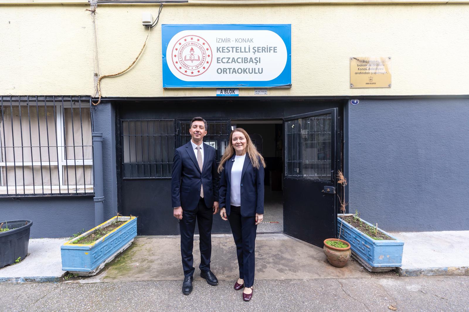 Konak Belediye Başkanı Nilüfer Çınarlı Mutlu, Kestelli Şerife Eczacıbaşı Ortaokulu Müdürü Osman Merze, eğitimciler ve okul öğrencileriyle bir araya geldi. Başkan Mutlu'ya, Namık Kemal Mahalle Muhtarı İbrahim Karabay, Selçuk Mahalle Muhtarı Nurettin Karaaslan, Tınaztepe Mahalle Muhtarı Polat Kabataş, Eşrefpaşalılar Derneği Başkanı Mehmet Yıldız, meclis üyeleri ve belediye bürokratları eşlik etti.