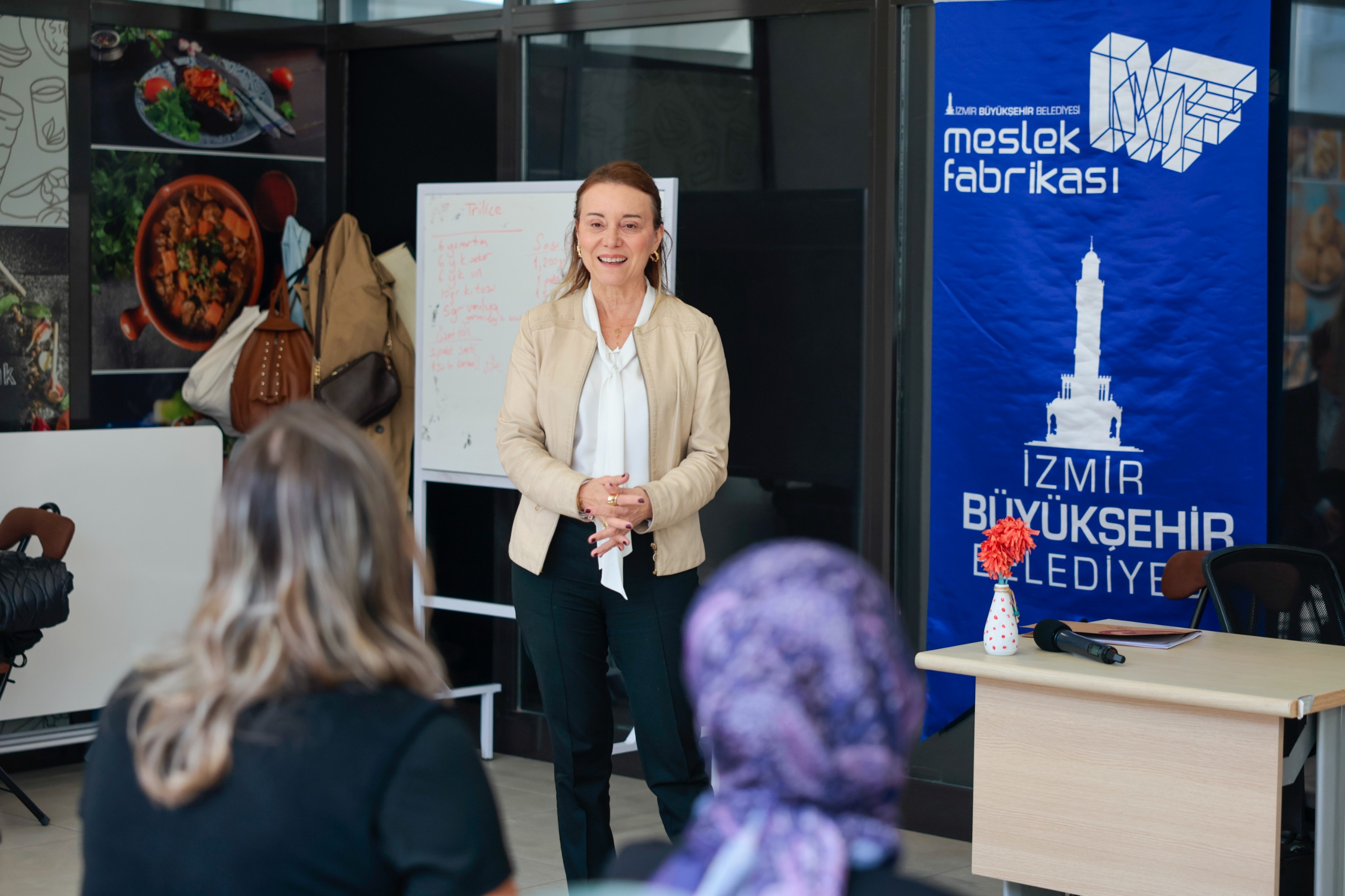 Konuşmaların ardından kursu başarıyla tamamlayan kadınlar sertifikalarını Başkan Mutlu’nun elinden aldı. Becerilerinin ve emeklerinin değerlenmesi için önemli bir adım atmış olmanın gururunu yaşayan kadınlar heyecanlarını Başkan Mutlu’yla paylaştı. Tören sonrası Başkan Nilüfer Çınarlı Mutlu, İzmir Büyükşehir Belediyesi ve Meslek Fabrikası’ndan gelen heyete Toros Sosyal Tesisleri’ni tanıtarak içinde yer alan sınıflardaki teknik imkanları anlattı. Yeni kurs ve işbirlikleri için hazır olduklarını dile getirdi.