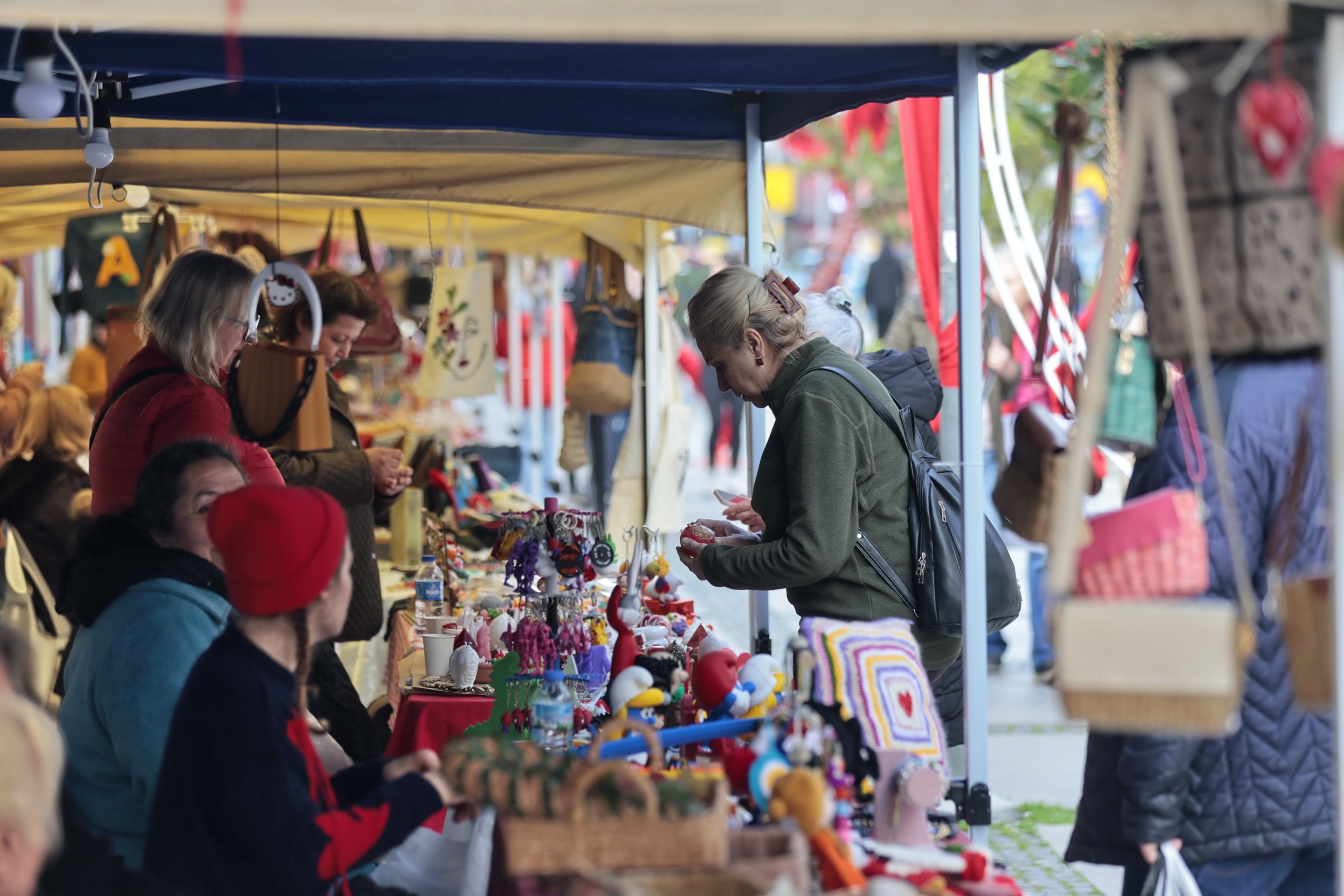Konak Belediyesi’nin 14 Şubat Sevgililer Günü etkinlikleri kapsamında düzenlediği Sevgililer Günü El Emeği Kermesi coşkuyla başladı. Alsancak Gazi Ortaokulu yanında yer alan trafiğe kapalı Dominik Caddesi üzerinde kurulan kermes ilk günden yoğun ilgi gördü. Üreten kadınların el emeği ürünlerinin satışa sunulduğu stantlar, sevdiklerine hediye almak isteyenlerle doldu taştı. Kermesin ilk gününde Konak Belediye Başkanı Nilüfer Çınarlı Mutlu da emekçi kadınları yalnız bırakmayarak stantları tek tek ziyaret etti. Eşi Necip Mutlu’nun da eşlik ettiği Başkan Mutlu, tüm İzmirlileri kermese davet ederek, “Sevgili komşularım, Sevgililer Günü etkinliklerimize ve kermesimize hepinizi bekliyoruz. Sevdiklerinize en güzel hediyeler elbette kadın emeğiyle üretilenler. Neşeli, keyifli bir Sevgililer Günü kutlaması için kermesimize davetlisiniz” dedi.